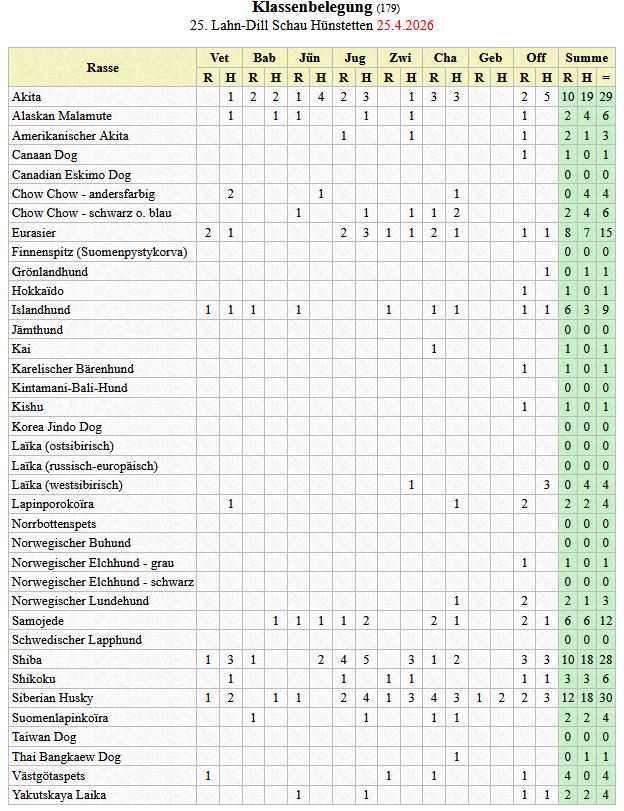 Meldestatistik zur Jubiläumsausstellung 25 Jahre Lahn-Dill-Schau am 26.06.2026