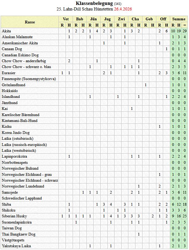 Die Meldestatistik zur 24. Lahn-Dill-Schau am letzten Aprilwochenende ist online!